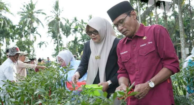 MukoJambi.Com, Tanjabtim – Bupati Tanjung Jabung Timur, Hj. Dillah Hikmah Sari, S.T., bersama Wakil Bupati Muslimin Tanja, S.Th.I., M.Si., melaksanakan panen cabai dan padi di Kecamatan Rantau Rasau, Jumat (27/02/2026).